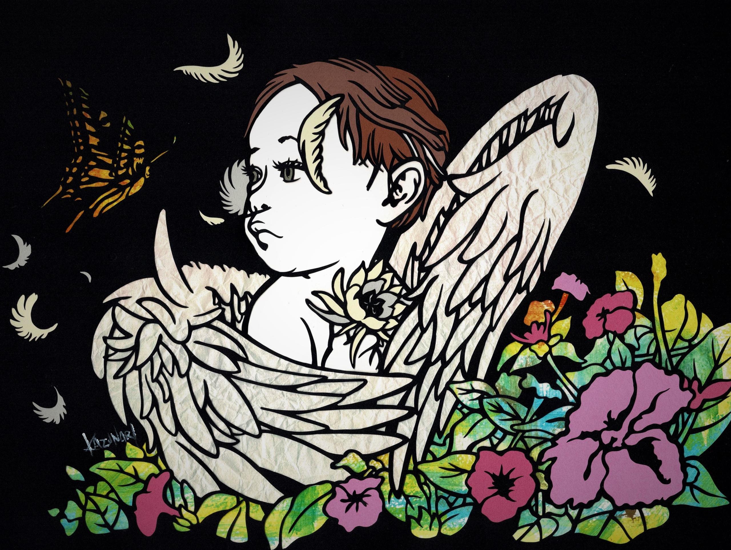 モデルの存在感を色彩&曲線美で描くのにくわえ、美しい花や蝶・妖精などHachiの感性にお任せいただく切り絵作品。納期に余裕のある方におすすめです。