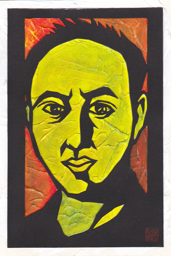 彼との交流は、それから数年に渡って続くのですが、「切り絵をもっと鮮やかにしよう」と思い立って、自作の色彩を絵の具で使用するようになったのは「藤岡光一の陶芸作品に近づくため」でした。