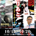 ①LIVE切り絵「切ル・観ル」 ヘルマンハープ演奏と切り絵パフォーマンスを午前午後におこなう予定です。 公演時間はお客様の込み具合に合わせて臨機応変におこないます。ぜひご来場のうえ、色々な出店とともにお楽しみください! […]
